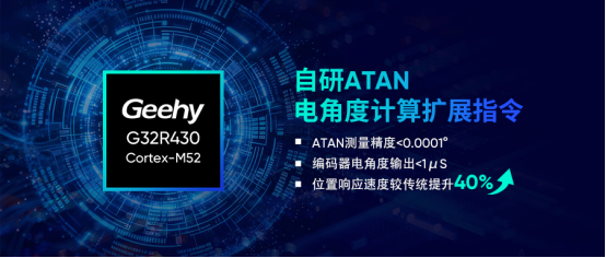 内置硬件TMU,支持极海自研高效ATAN电角度计算硬件扩展指令,该创新设计可将复杂三角函数运算硬件化,实现优于0.0001°的ATAN测量精度和小于1μs的编码器电角度输出延迟,轻松捕捉最细微的角度变化,整体位置反馈速度较传统提升40%,大幅强化伺服系统位置反馈实时性,为控制环路响应速度赋能升级。