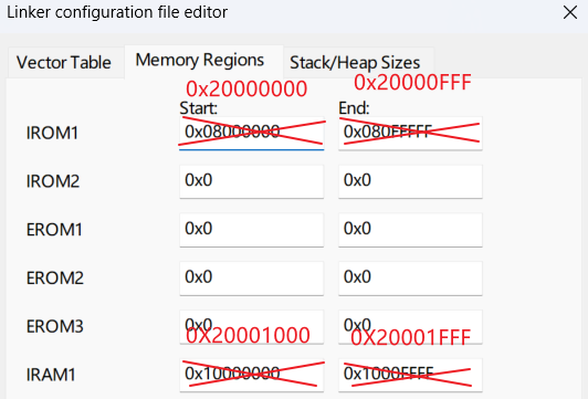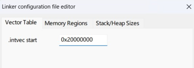 修改.icf文件,将.intvec start地址修改为SRAM的首地址。