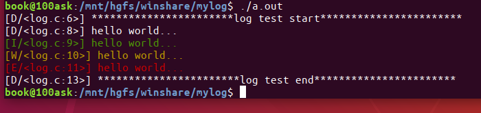 可以看到有不同颜色的打印效果,如果不想打印某些信息的级别,修改打印日志输出级别的宏定义即可。