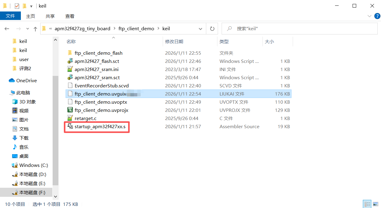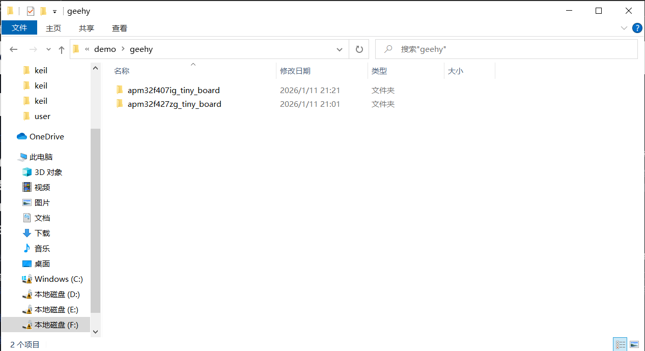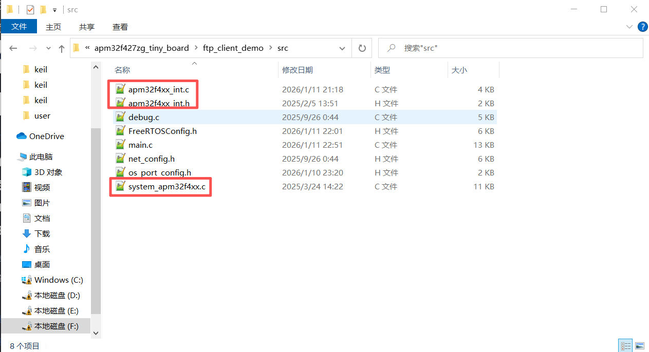 2.下载完毕后,发现demo里有之前apm32f407的移植示例,这里在demo/geehy文件夹下,新建一个apm32f427zg_tiny_board文件夹,从apm32f407ig_tiny_board中拷贝一个ftp工程进来,然后开始替换极海F4标准库版本;
