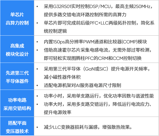 G32R501实时控制DSP/MCU,可满足由两级功率拓扑单元构成的 7kW~ 11kW AI服务器电源应用的功率需求:
