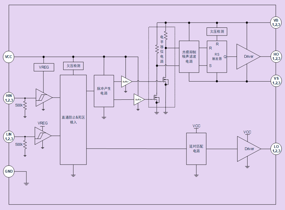 内置VCC/VBS欠压(UVLO)保护功能,防止功率管在过低的电压下工作;