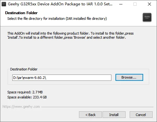 使用管理员权限打开该文件,选择安装芯片支持的路径(IAR EW for Arm安装路径),例如:D:\iar\ewarm-9.60.2\